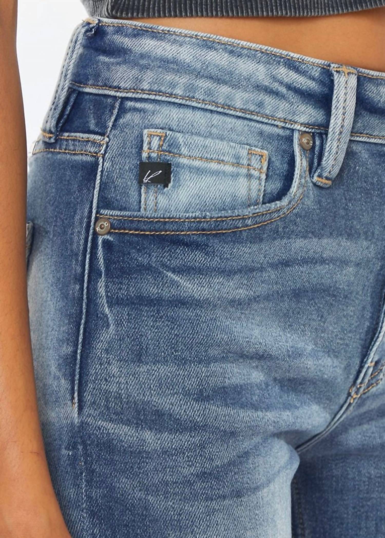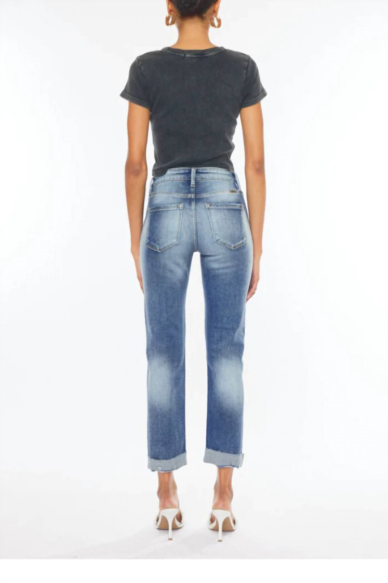 This classic straight leg jean has a perfect fit and goes with just about everything. Perfect blend of comfort and style. High-rise slim straight jeans feature a medium stone wash with a practical button closure. Made from 93% cotton, 5% polyester, and 2% spandex. Offer a comfortable stretch fit. With a rise of 10.5 inches and an inseam of 28.5 inches. Enjoy the practicality of pockets in these stylish straight-leg pants.