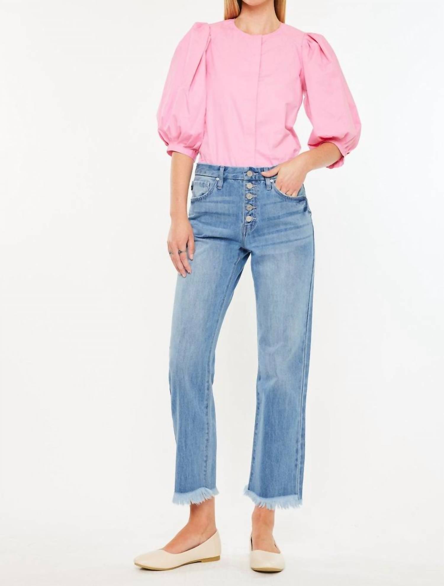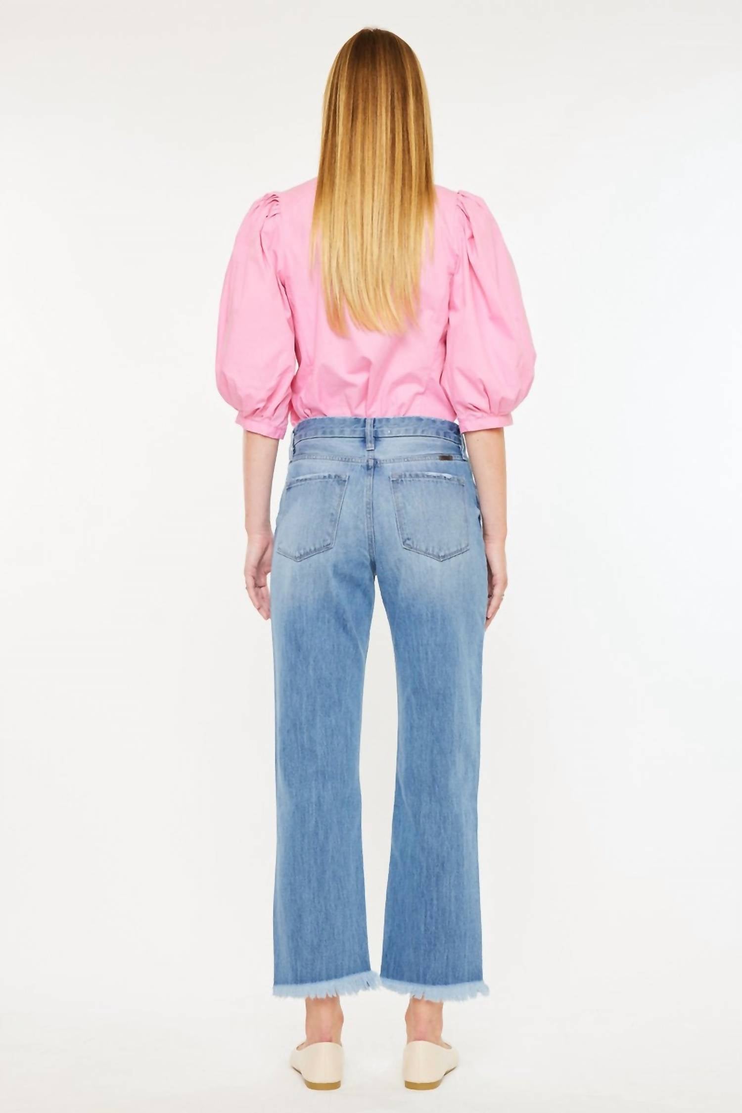 Slight fading and marbling throughout as it relaxes down the leg and finishes at the ankle with a frayed hem. Sit above the natural waistline as it gently drapes down the legs for a classic straight-leg fit. Made with rigid denim. Classic five-pocket design and five-button button-up closure. Finished with gold-colored hardware. 10.25" Rise / 27" Inseam. 100% Cotton. Please note, this style runs small. We recommend sizing up one size for your true size and a snug fit, and sizing up two sizes for a loose, straight leg, boyfriend fit. We personally love the more slouchy, baggy fit.