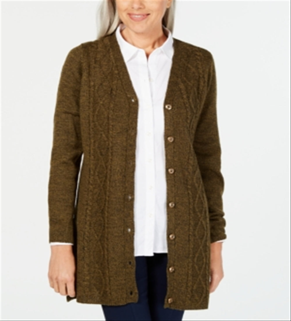 V-neck; front button closures| Cable-knit detail at front| | Acrylic