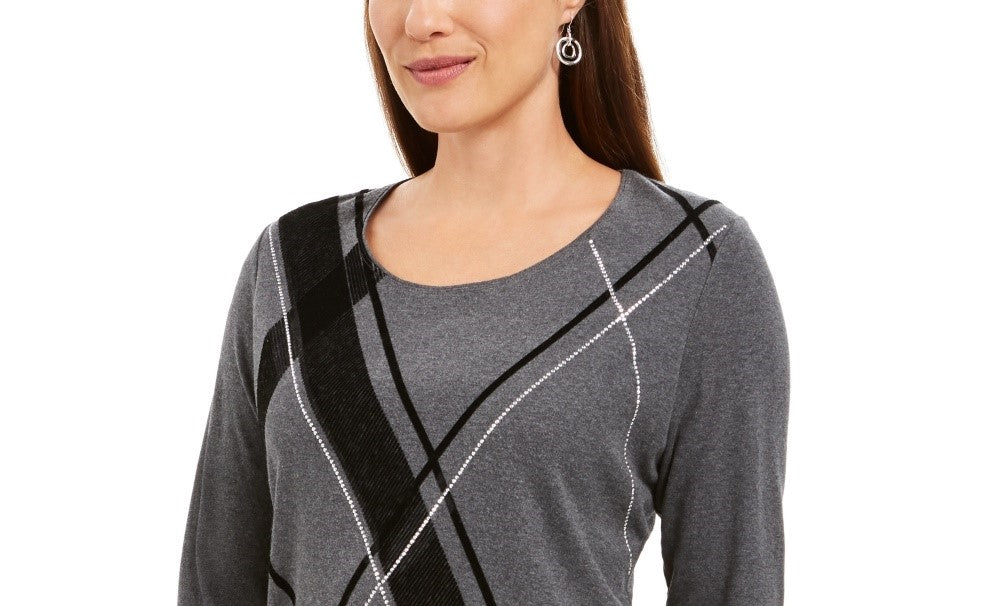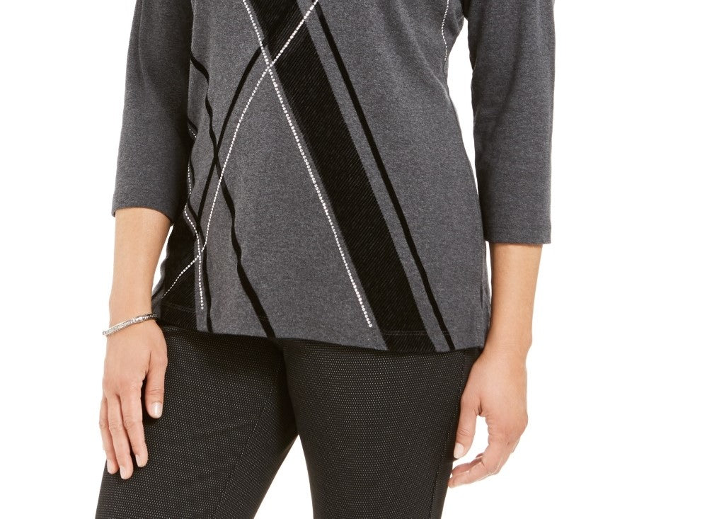 Karen Scott Women's Angled Stripe Top Charcoal Size X-Small
