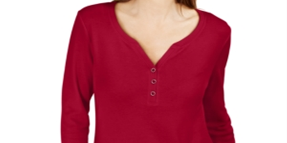 Karen Scott Women's 3/4 Sleeve Henley Shirt Red Size Medium