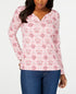 Karen Scott Women's 3/4 Sleeve Printed Henley Pink Size Large