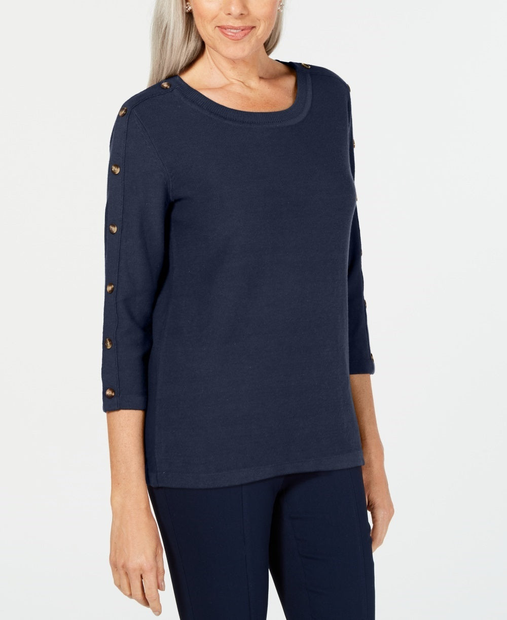 Karen Scott Women's 3/4 Sleeve Sweater Blue Size Small