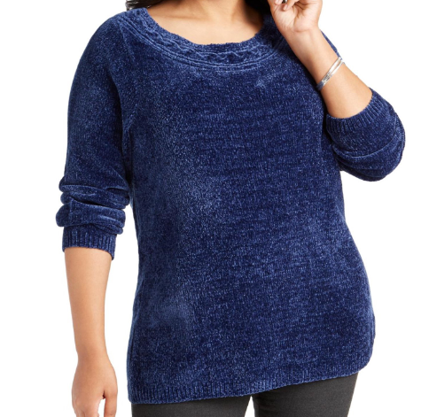 Karen Scott Women's Boat Neck Chenille Sweater Blue Size 1X