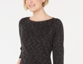 Karen Scott Women's Boat-Neck Space-Dyed Top Black Size X-Large