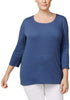 Karen Scott Women's Cotton 3/4-Sleeve Top Blue Size Extra Large
