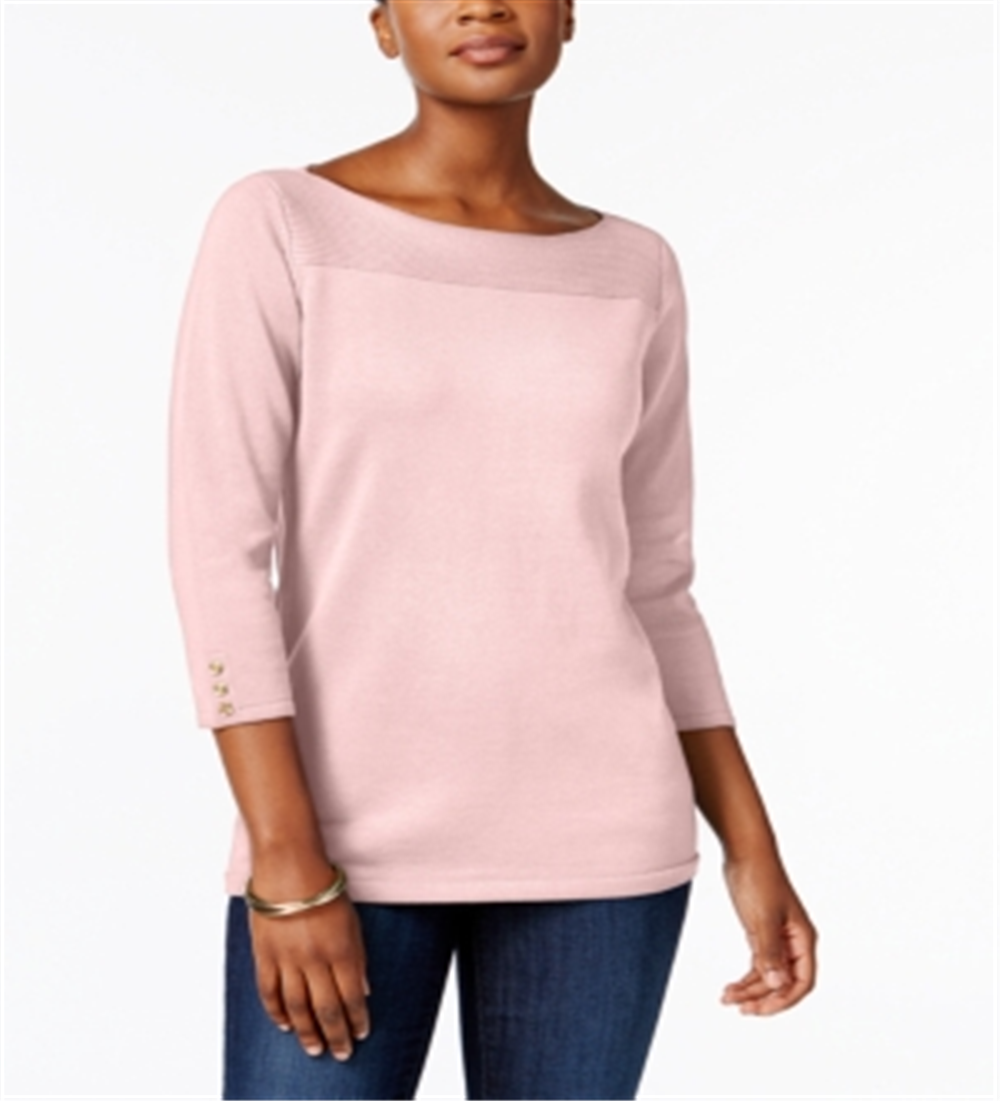 Karen Scott Women's Cotton Button Trim Sweater Pink Size Petite S/M