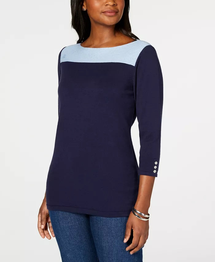 Karen Scott Women's Cotton Colorblocked Sweater Blue Size X-Small