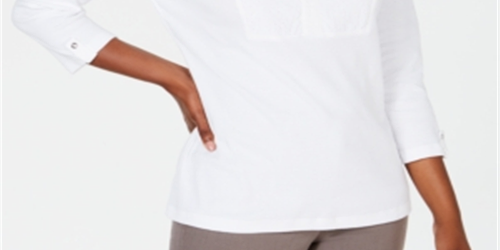Karen Scott Women's Cotton Eyelet Yoke Top White Size Large