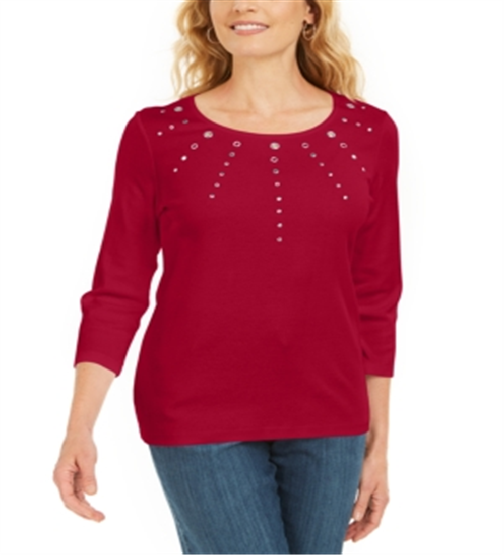 Karen Scott Women's Cotton Grommet Hardware Top Red Size Petite S