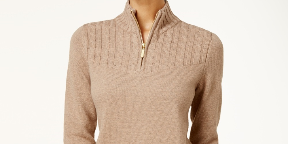 Approx. 23-1/2 long|Due to generous sizing; we suggest sizing down for the perfect fit|Designed to fit and flatter 5'4 and under frame|Mock neckline with half-zip placket|Cable knit at front yoke and shoulders