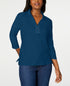 Relaxed fit; hits at hip; approx. 26" long|Due to generous sizing, we suggest sizing down for the perfect fit|Point collar with lace-up detail|3/4-sleeves