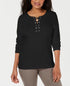 Karen Scott Women's Cotton Lace-Up Top Black Size X-Small