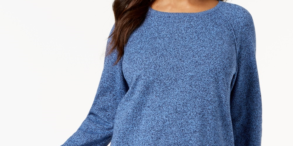 Karen Scott Women's Cotton Marled Curved Hem Top Blue Size X-Small