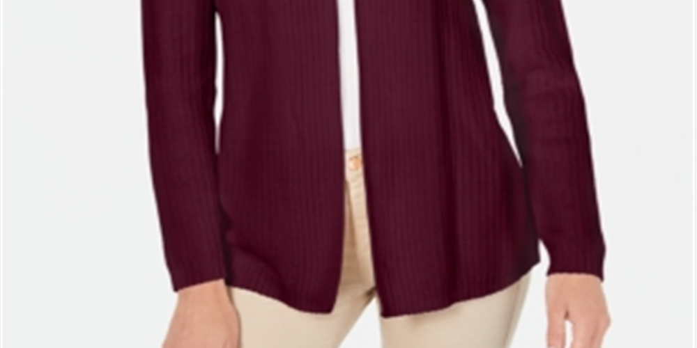 Karen Scott Women's Cotton Mixed Knit Cardigan Merlot Size Petite L
