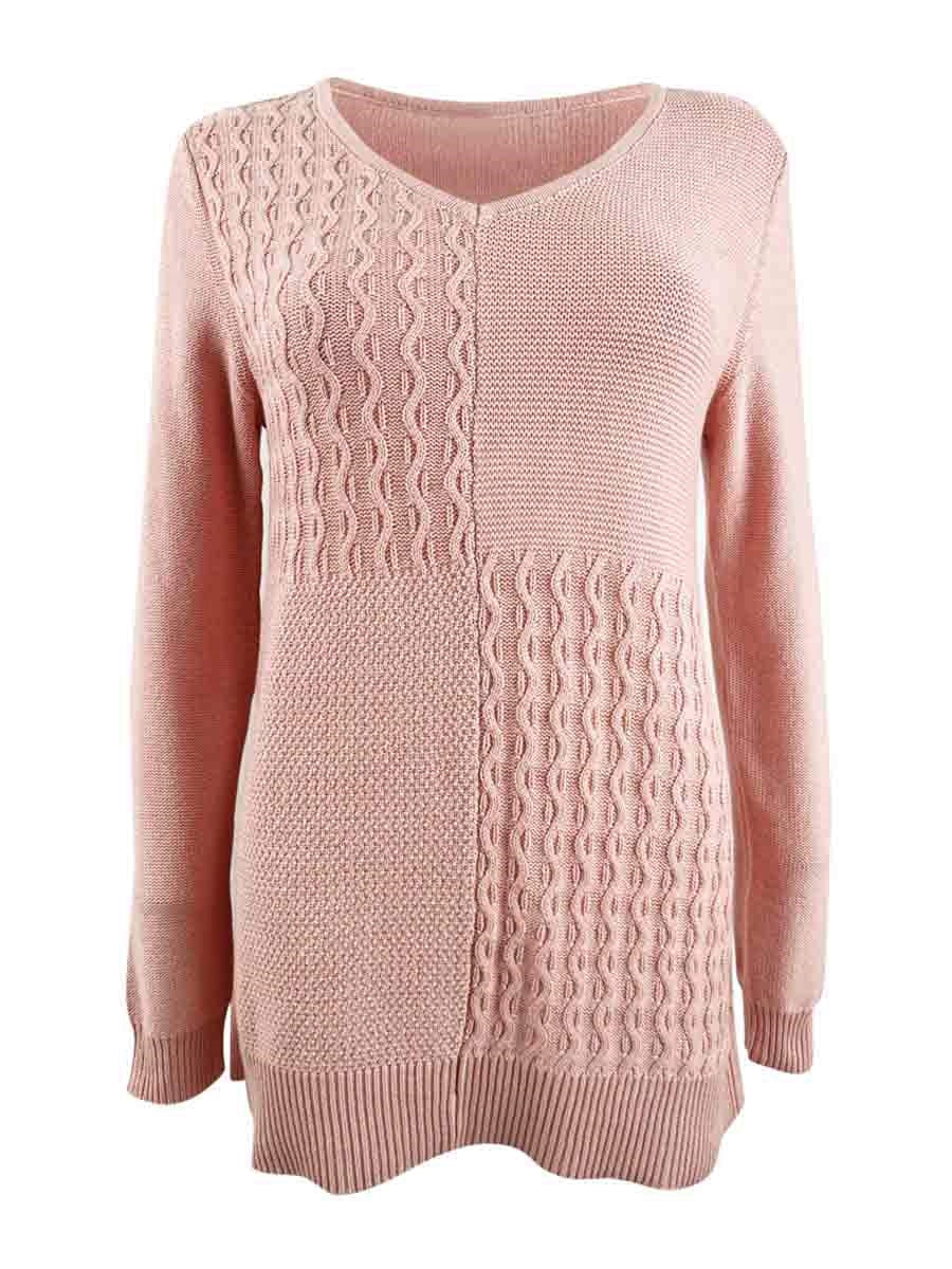 Karen Scott Women's Cotton Mixed Stitch Sweater Pink Size X-Small
