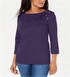 Karen Scott Women's Cotton Shawl Collar Button Top Purple Size Large