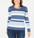 Karen Scott Women's Cotton Striped Cable Knit Sweater Blue Multi Size Petite S