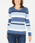 Karen Scott Women's Cotton Striped Cable Knit Sweater Blue Size Petite Large
