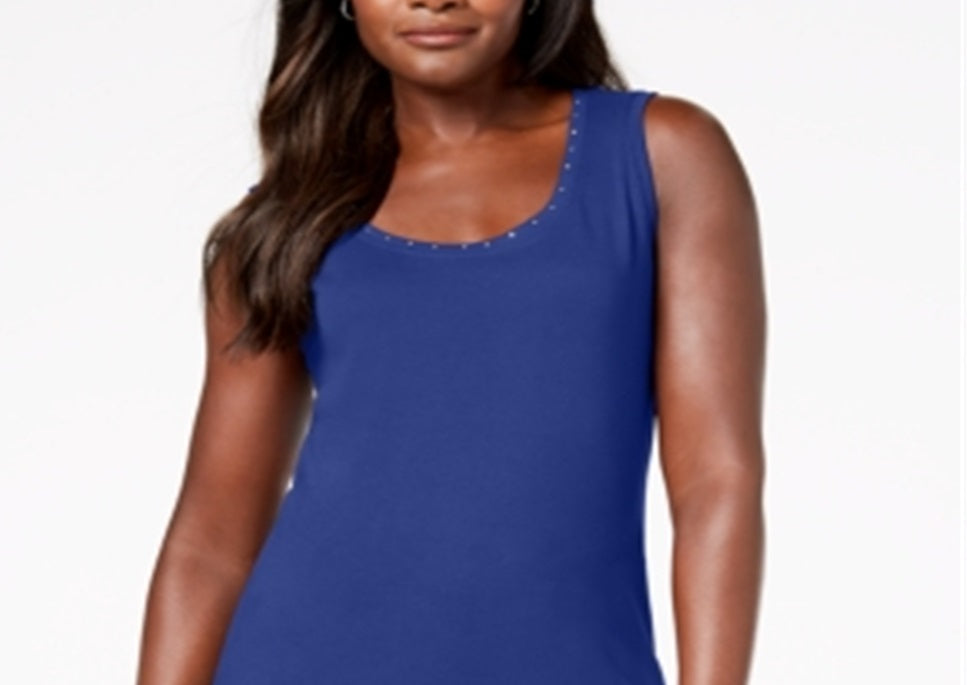 Karen Scott Women's Cotton Studded Tank Blue Size Petite S