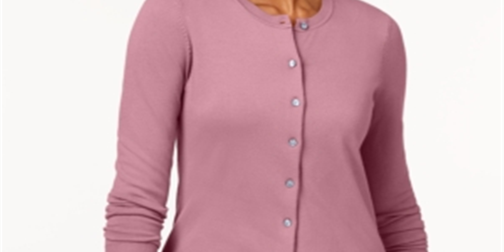 Karen Scott Women's Crew Neck Cardigan Pink Size Small