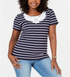 Karen Scott Women's Crochet Lace Striped Cotton Top Blue Size Medium