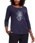 Karen Scott Women's Embellished Seahorse Top Navy Size Small