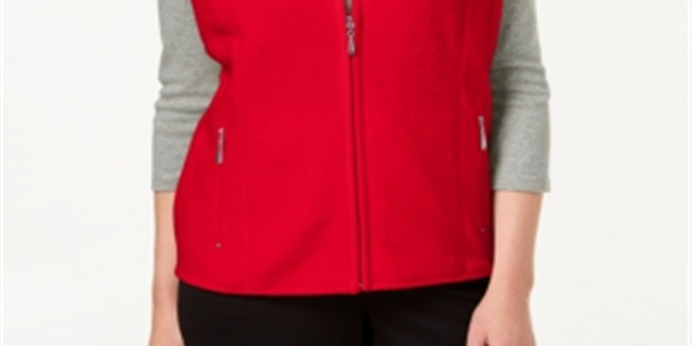 Karen Scott Women's Fleece Zip Front Vest Red Size Petite Small