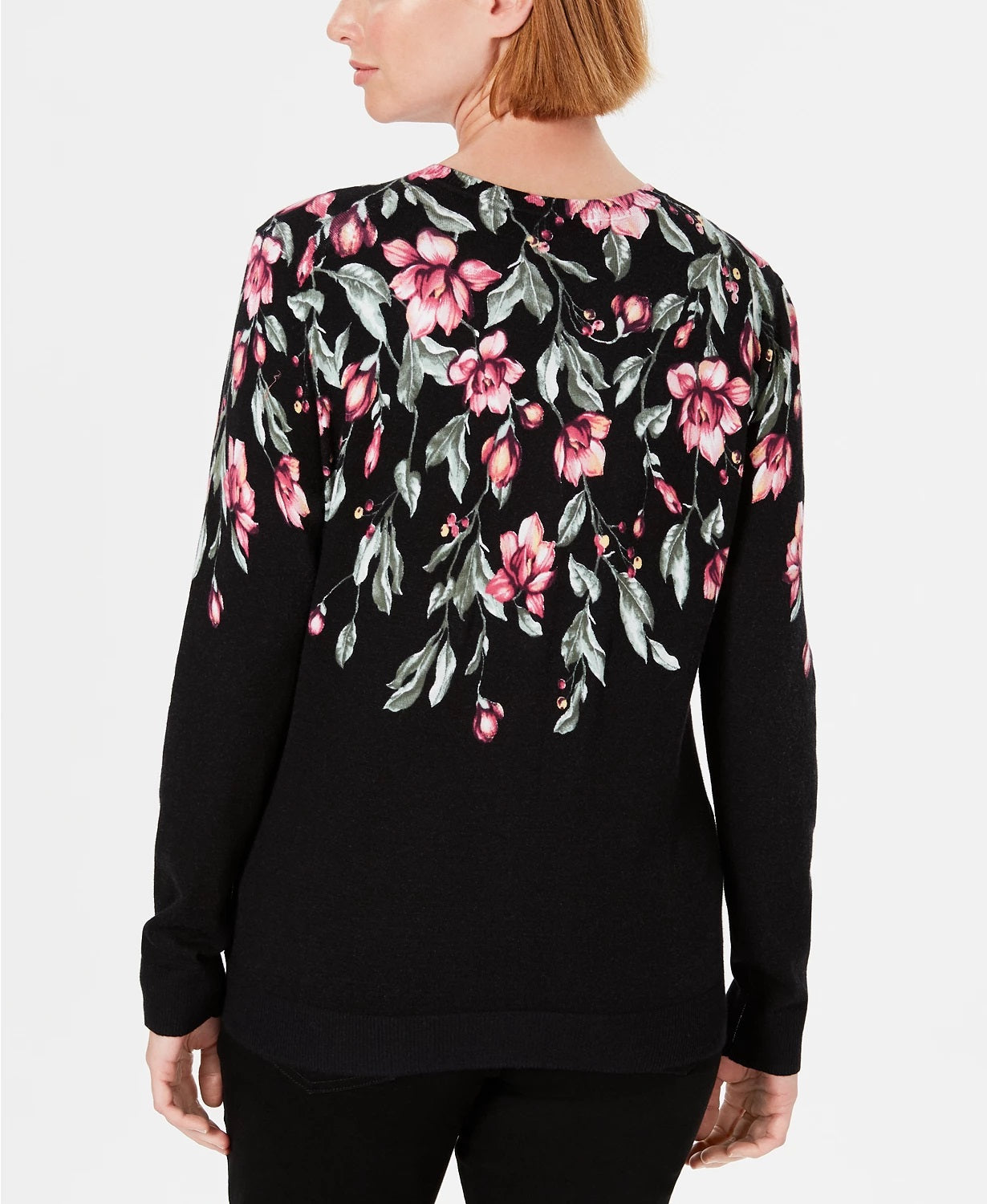 Karen Scott Women's Floral Print Cardigan Black Size Small