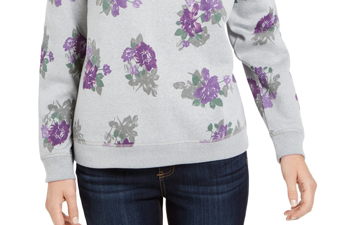 Karen Scott Women's Floral-Print Sweatshirt Gray Size 2 Extra Large