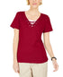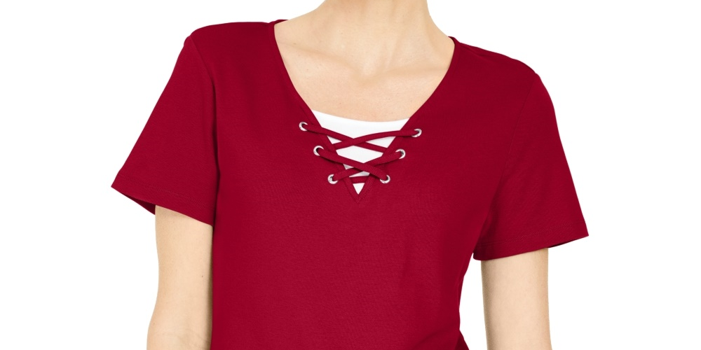 Karen Scott Women's Lace-Up Layered-Look Top Bright Red Size Large