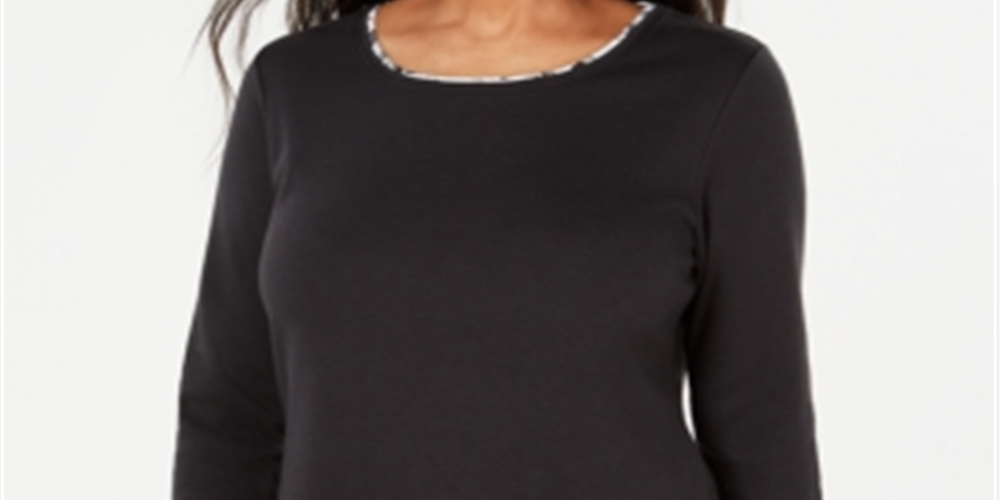 Ask a question about Karen Scott Women's Layered Look Solid & Plaid Top Black Size X-Small