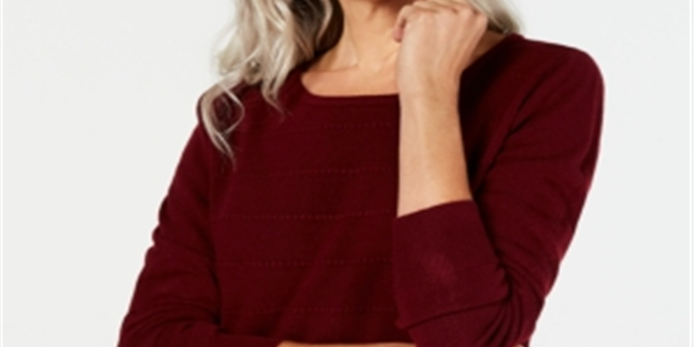 Karen Scott Women's Ottoman Stitch Sweater Wine Size Petite S