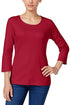 Karen Scott Women's Petite Cotton Scoop-Neck Top Bright Red Size Small