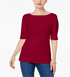 Karen Scott Women's Petite Elbow-Sleeve Top Red Size Petite S