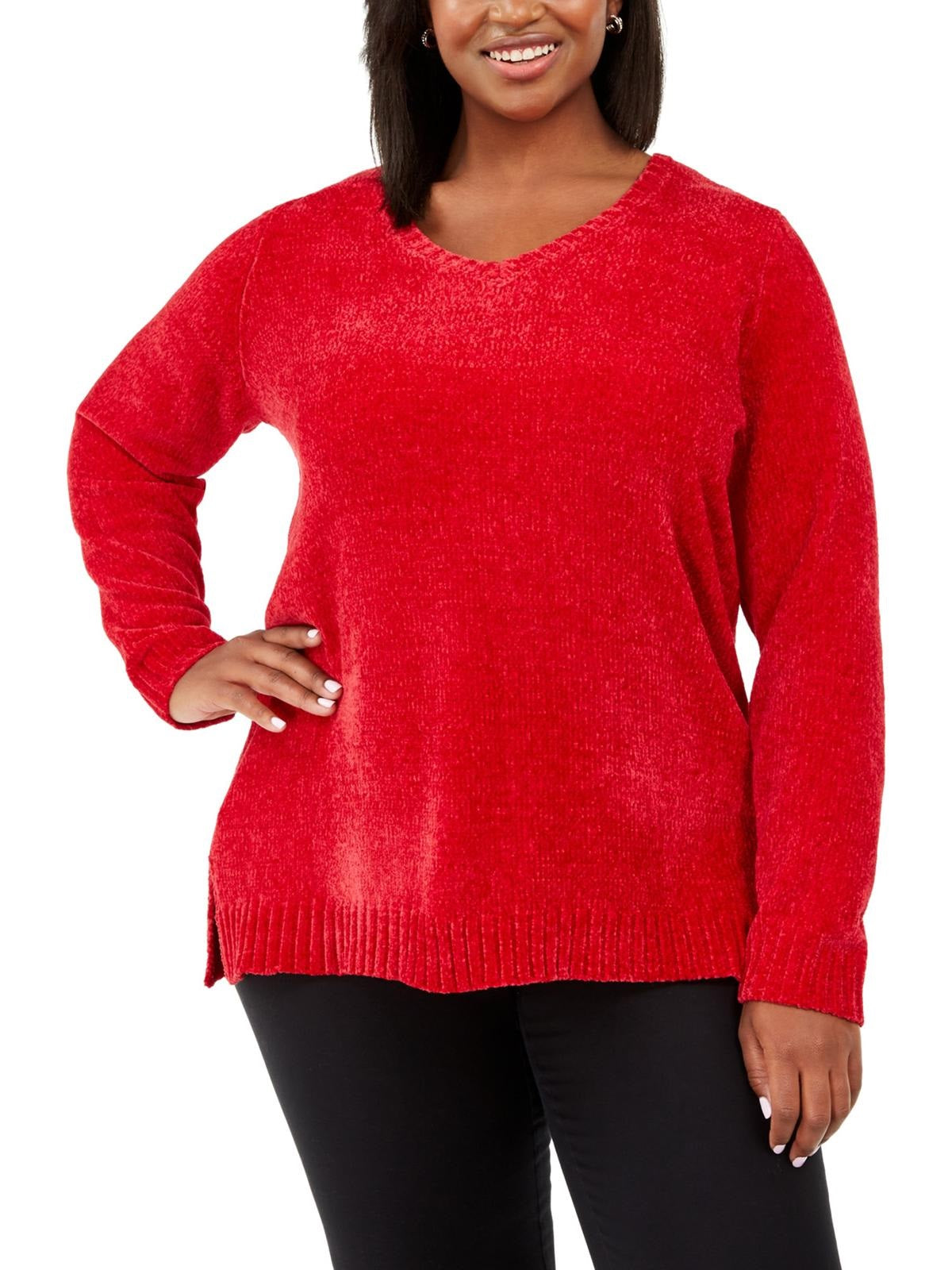 Karen Scott Women's Plus Size Boat-Neck Chenille Sweater Bright Red Size 3X