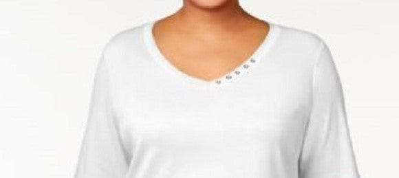 Karen Scott Women's Plus Size Cotton V-Neck Top White Size 2 Large