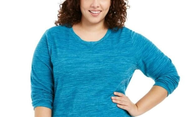 Karen Scott Women's Plus Size Marled Microfleece Top Blue Size 2X