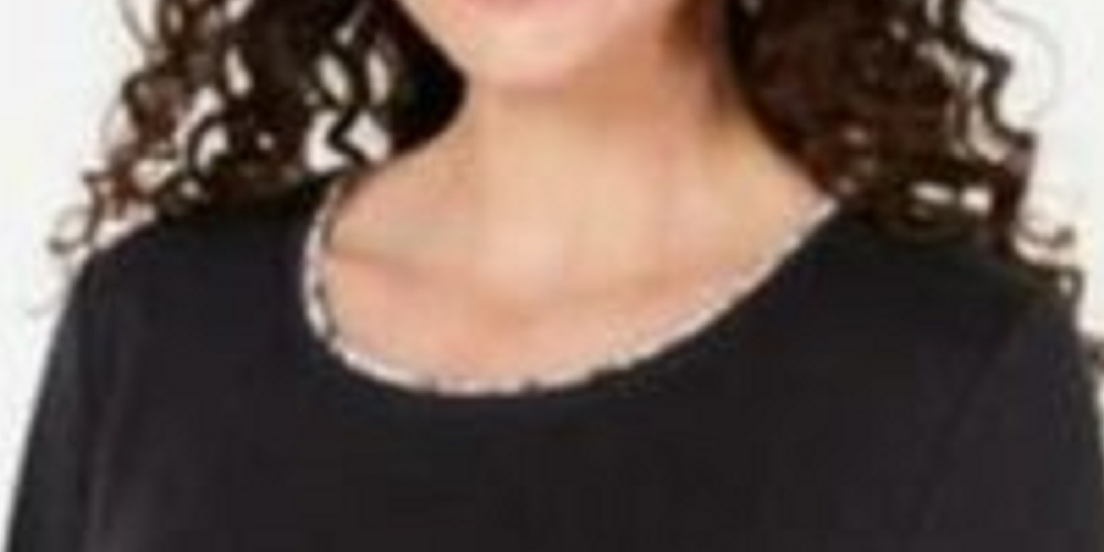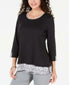 Karen Scott Women's Plus Size Printed-Hem 3/4-Sleeve Top Black Size 0X