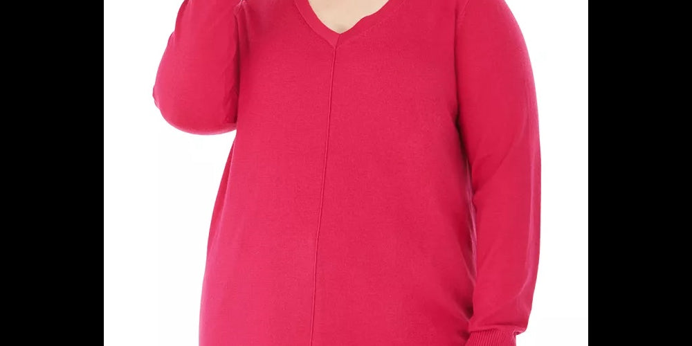 Karen Scott Women's Plus Size V-Neck Sweater Dark Pink Size 1X