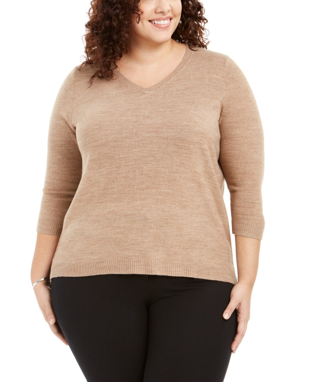 Karen Scott Women's Plus V Neck Luxsoft Sweater Brown Size 3X