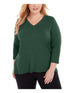 Karen Scott Women's Plus V Neck Sweater Green Size XL