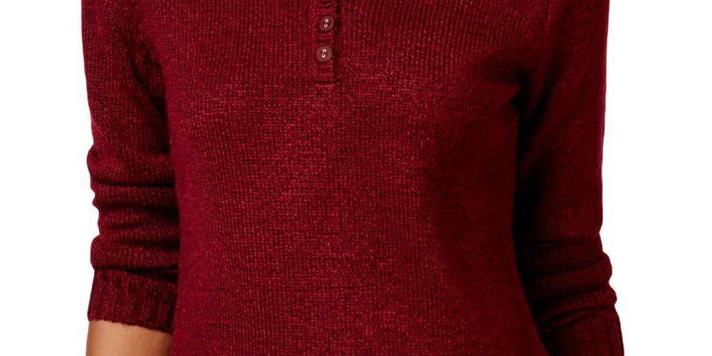 Karen Scott Women's Point Collar Sweater Maroon Size -Petite L