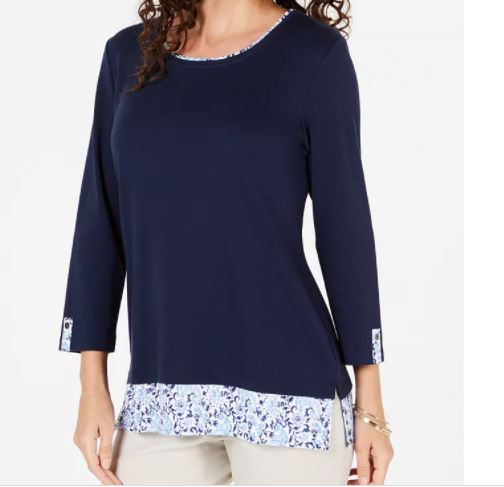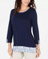Karen Scott Women's Printed Hem 3/4 Sleeve Top Navy Size Medium