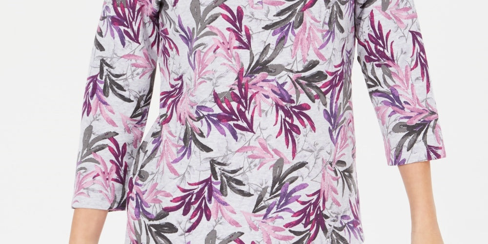 Relaxed fit; hits at hip; approx. 24-1/2" long|Designed to fit and flatter 5'4" and under frame|Henley neckline|3/4-sleeves|Cotton/polyester