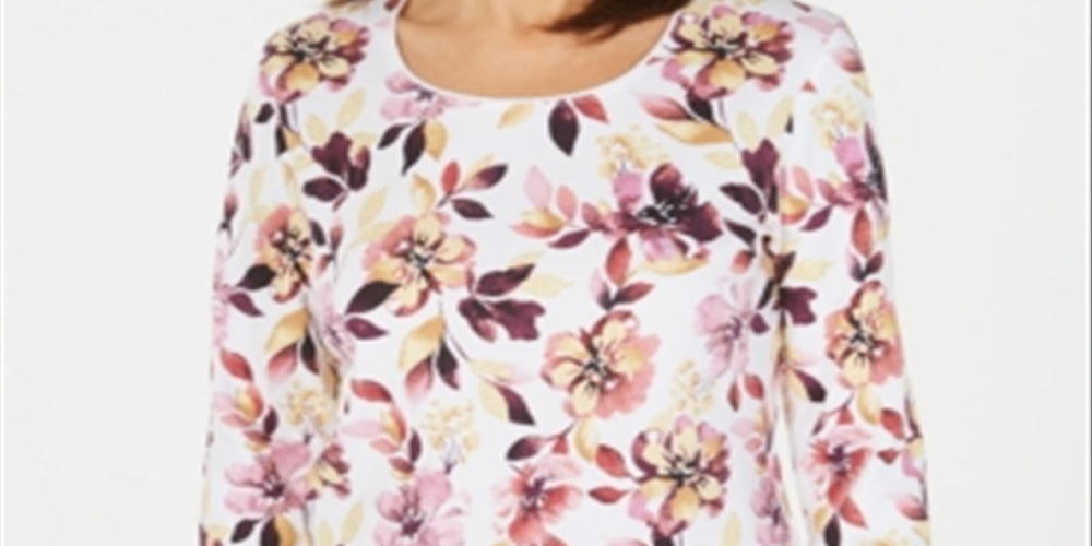 Karen Scott Women's Printed Long Sleeve Top White Size X-Small