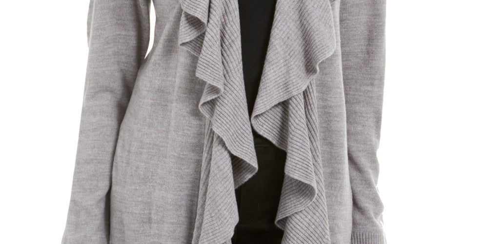 Karen Scott Women's Ruffle Front Cardigan Grey Size Large