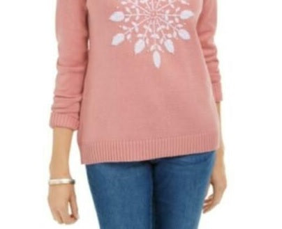 Karen Scott Women's Snowflake Applique Sweater Pink Size Large