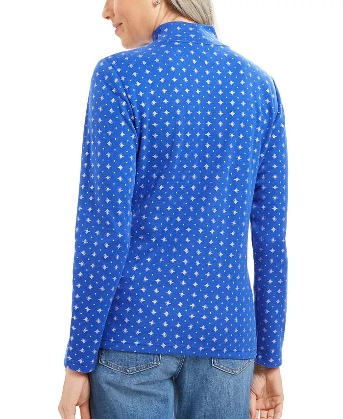Karen Scott Women's Snowflake Dot Printed Mock Neck Top Blue Size Petite Small