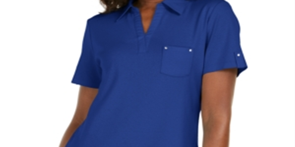 Karen Scott Women's Solid Collared Polo Top Blue Size Small